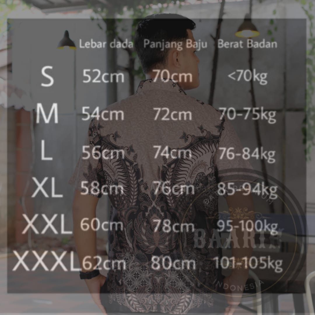 M : Lebar Dada 54cm X Lingkar Dada 108cm X Panjang Baju 72cm